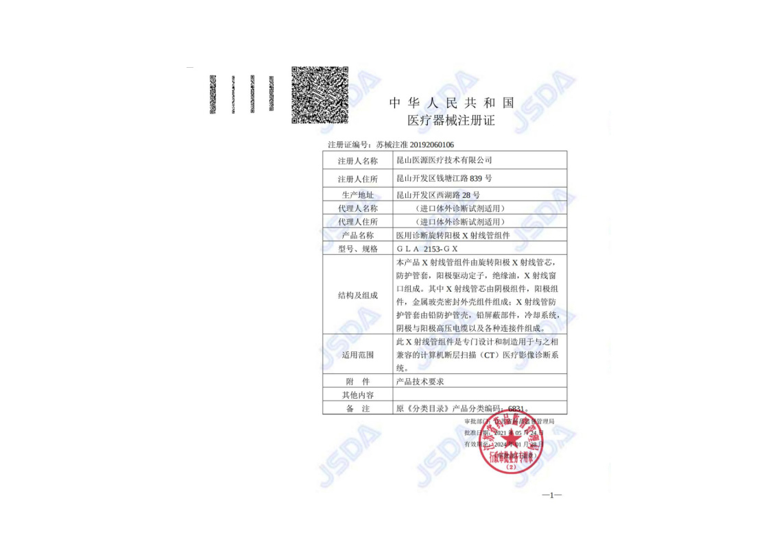 昆山医源医疗技术有限公司是一家专业从事医用CT球管研发、生产、销售及技术服务、技术咨询的高科技企业。公司依托国力股份40年军民融合的电真空技术平台,从2013年开始研发CT球管,注册资本3.246亿元人民币。
